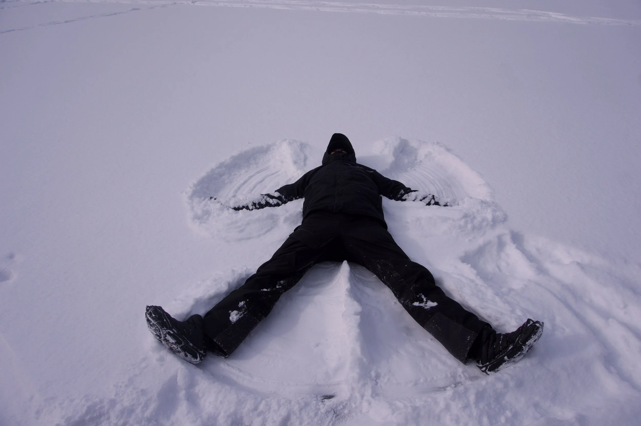 After a few minutes, the snowfall eased and some sunlight started filtering through the clouds. We made snow angels for fun - a quick reminder not to take the day too seriously. I paused again just to take in the stillness. Snow has a way of dulling sound and creating a sense of calm that’s hard to describe but easy to feel.